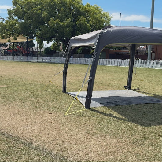 This air gazebo is built to be tough enough for most New Zealand conditions. The air frame is protected by multiple layers of HD fabric to reduce the chance of damage and give more rigidity. Attached self-equalising webbing guy straps keep your shelter steady in the wind - we've wind tested it to 68 km/h. It also has the same shape as a traditional 3m steel gazebo, which means nice big doors and straight sides. This gives it a large internal volume, unlike a lot of other dome style shelters which can have low doors and cramped corners.